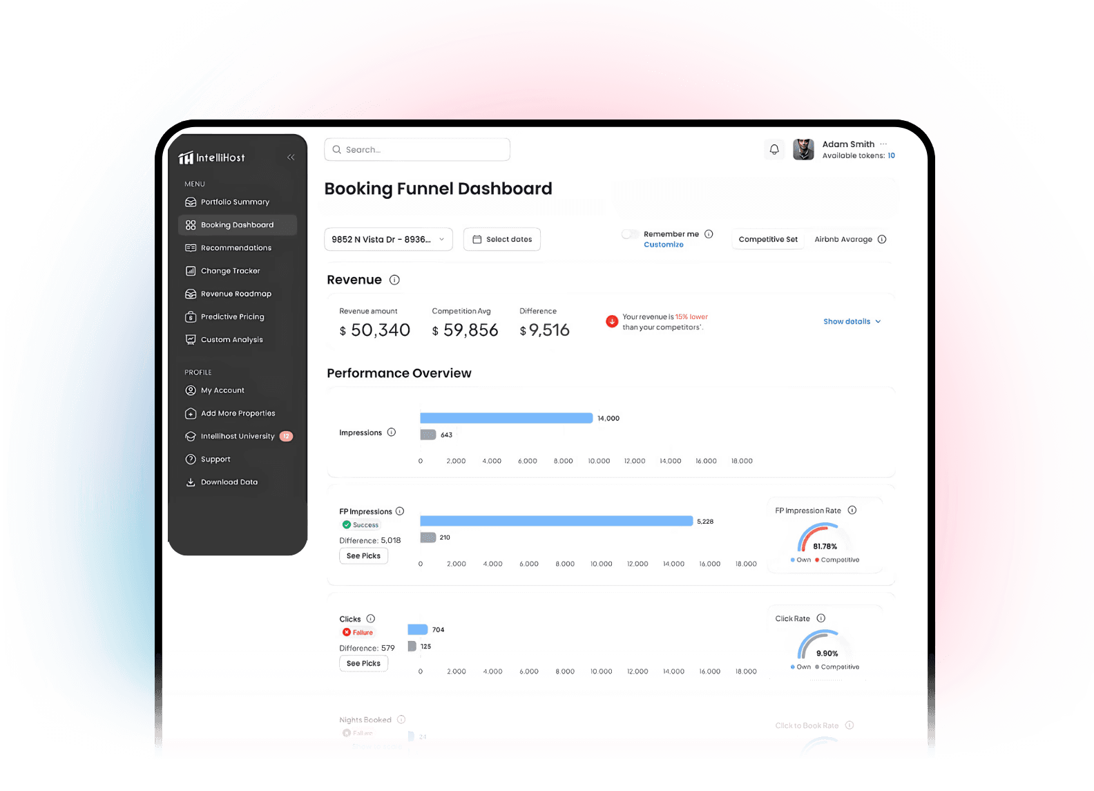 See exactly where you’re losing bookings—at a glance. IntelliHost tracks impressions, clicks, and conversions in real time so you can fix what’s broken fast.