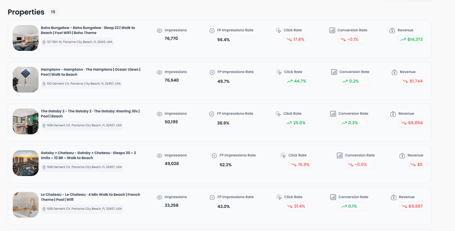 IntelliHost shows you exactly what’s working, what’s not, and how to fix it fast. Using real-time performance data, we give each listing a step-by-step plan to improve their title, photos, pricing, and more—so your listings show up on page 1 of the OTAs and stay there.