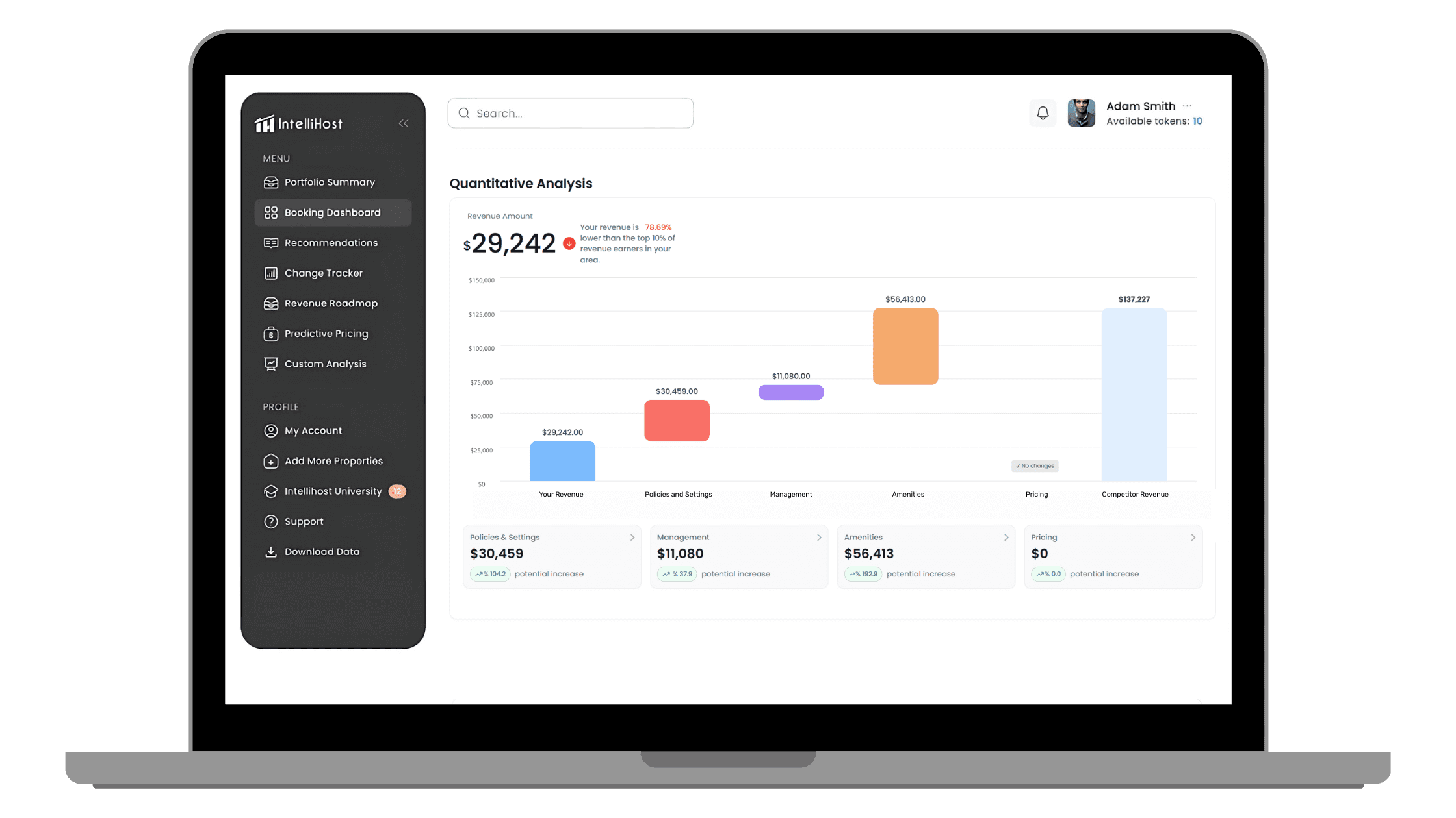 IntelliHost is like having a personal trainer for our listing. The competitive along with actionable next steps to improve our listing makes it super digestible and easy to know where we can make tweaks to improve.
